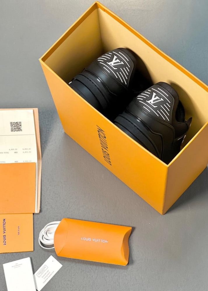 بالإضافة إلى ذلك، يتميز هذا الشوز بتفاصيله الفريدة التي تميزه عن غيره. يحمل توقيع لويس فيتون الشهير بشكل لافت للنظر على الجزء العلوي من الحذاء، ما يضيف لهجة عصرية ومميزة إلى التصميم العام. كما يتميز الحذاء بنعله الأنيق والمرن، الذي يوفر المزيد من الثبات والمتانة أثناء المشي.