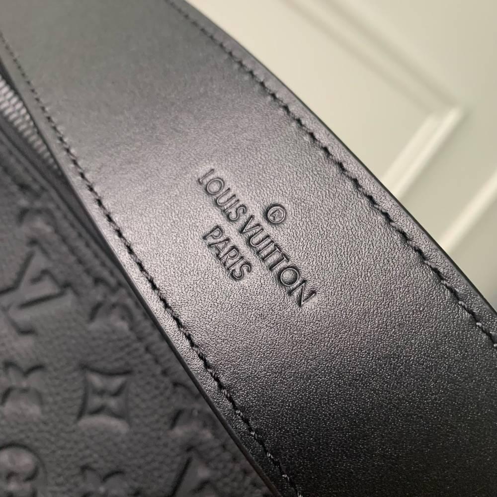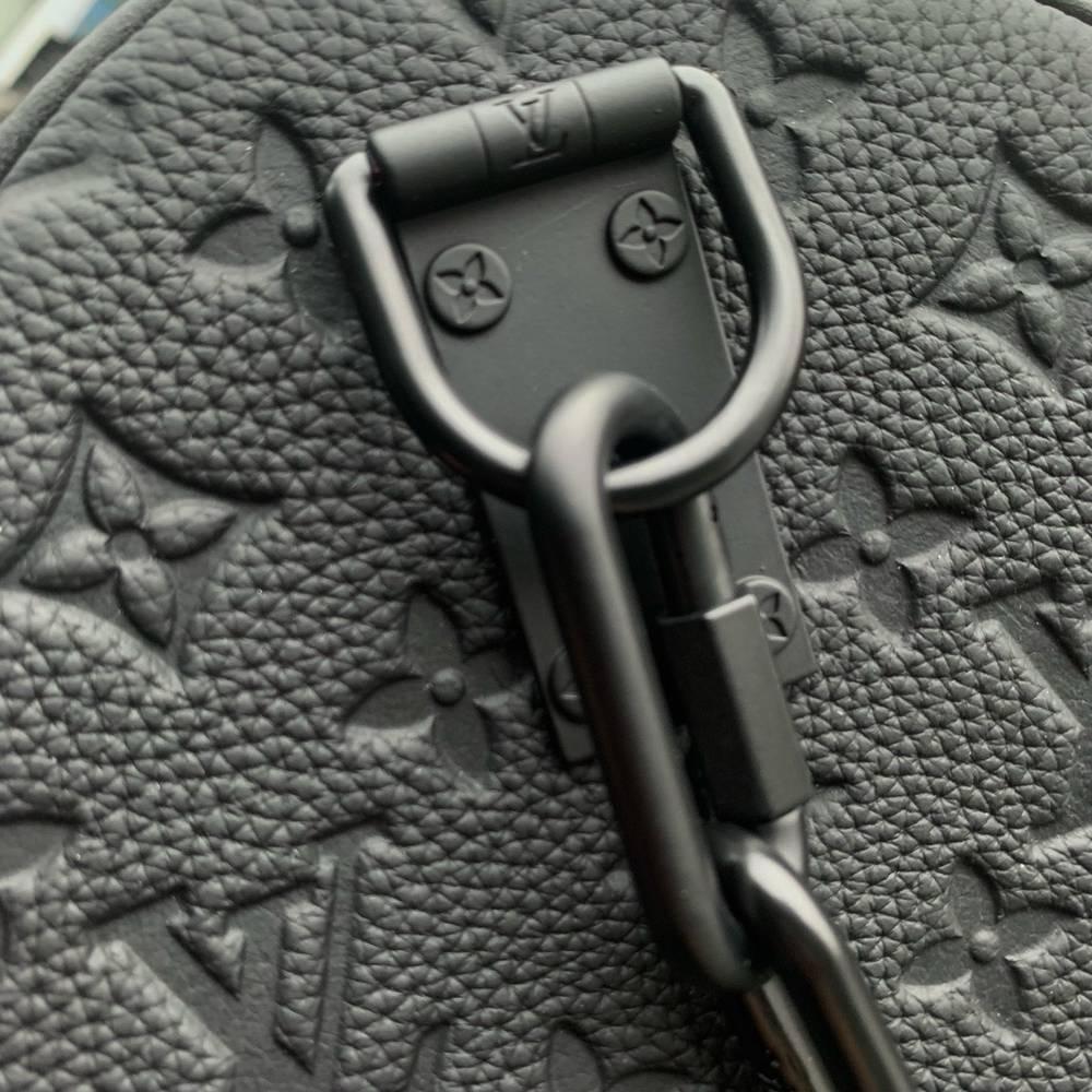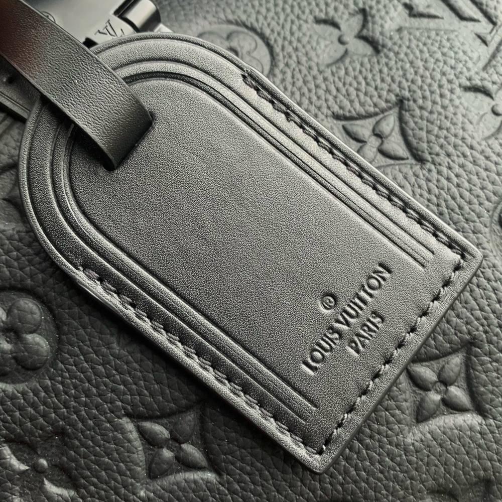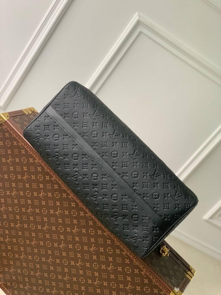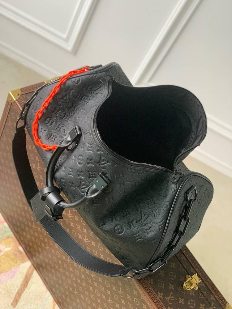 صنعت الحقيبة من جلد العجل المزين بزخارف تعبر عن هوية لويس فيتون، بالإضافة لبطانة من نسيج القطن الناعم وقطع حديدة للسحابات.